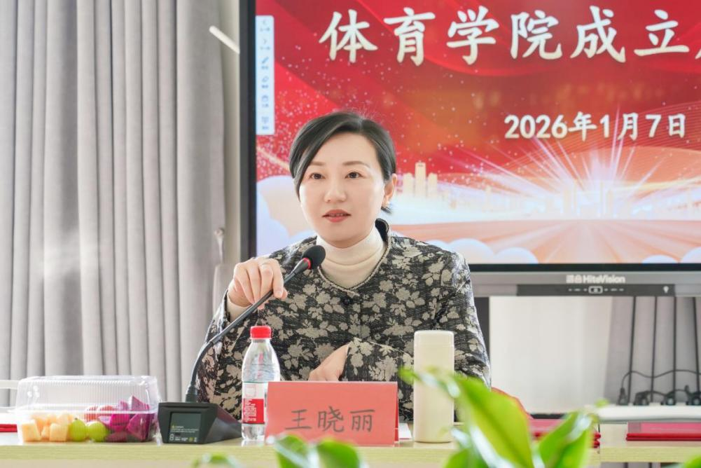 体育学院党委书记王晓丽在讲话中表示,体军部更名为体育学院不仅是名称的变更,更是学校体育教育层次提升、发展格局拓展、使命责任升华的重要标志。她强调,学院将以此为新起点,统一思想、锐意进取、追求卓越,努力打造具有影响力和美誉度的体育学院,为学校体育事业高质量发展贡献力量。